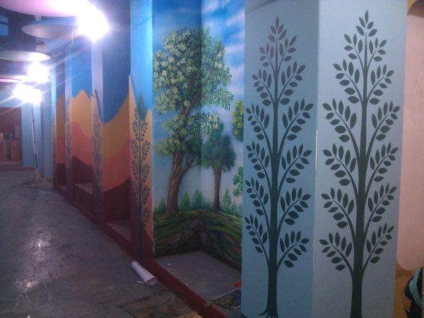 I had the privilege of creating a large-scale wall painting for the BAPS Jaipur Mandir Exhibition. This artwork vividly portrays significant moments and teachings, inviting visitors to immerse themselves in the spiritual journey. Every detail was meticulously crafted to reflect the Mandir’s reverence and bring its profound history to life.