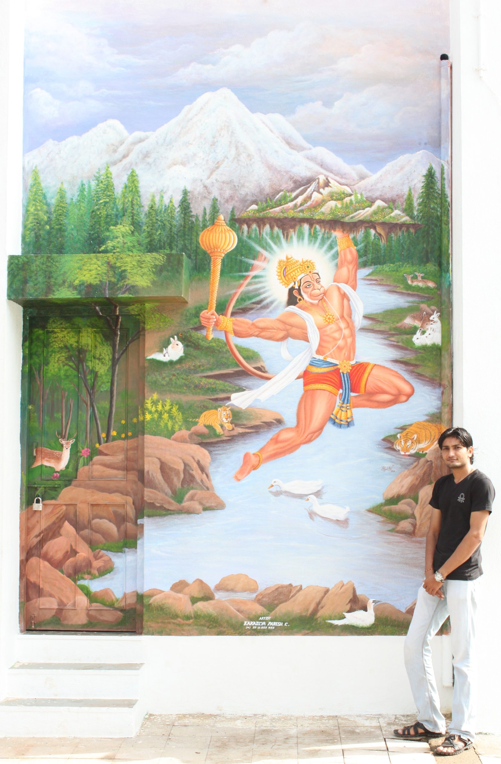 I recently completed a large-scale Hanumanji fresco wall painting, a heartfelt tribute to the revered deity. This artwork captures the strength, devotion, and grace of Hanumanji, bringing his divine presence to life on the wall. Every detail, from his powerful form to the intricate expressions, was meticulously rendered to inspire awe and reverence.