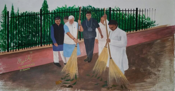 I recently completed a vibrant wall painting dedicated to Narendra Modi’s Cleanliness Campaign. This artwork visually captures the essence of the initiative, depicting scenes of community participation and the positive impact of a cleaner environment. It serves as a colorful reminder and inspiration for all towards a Swachh Bharat.