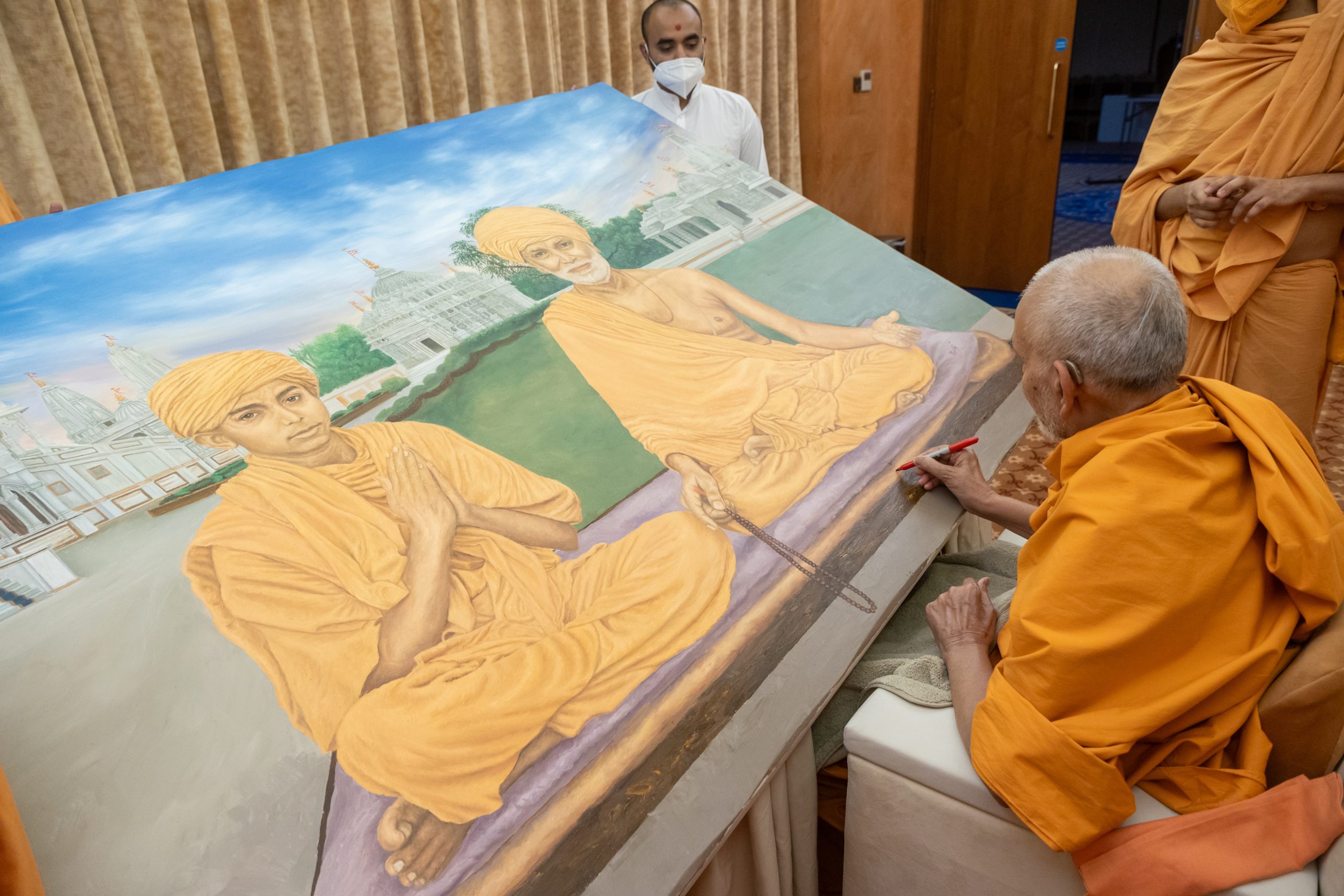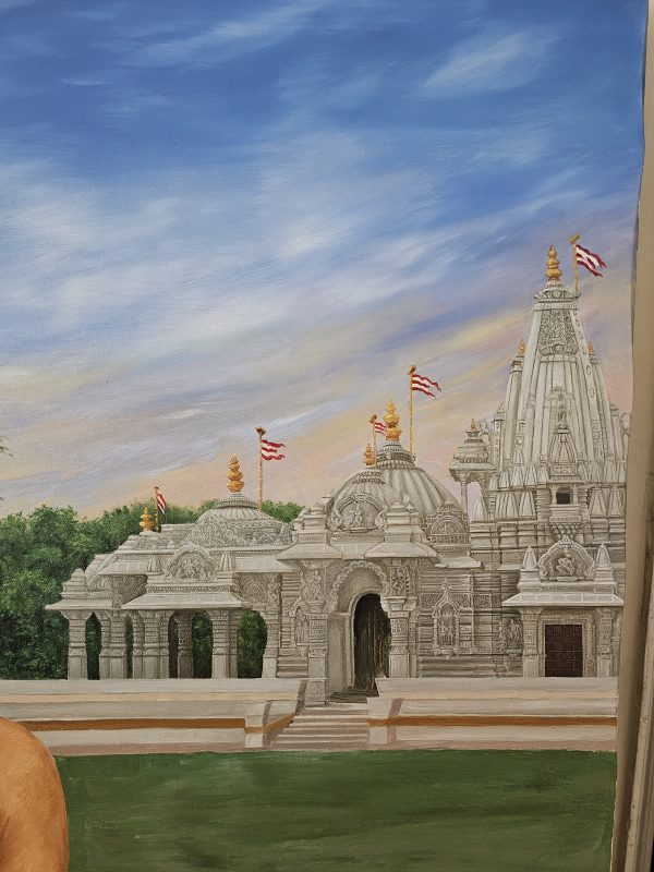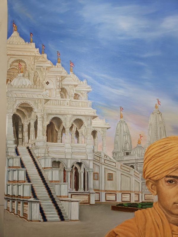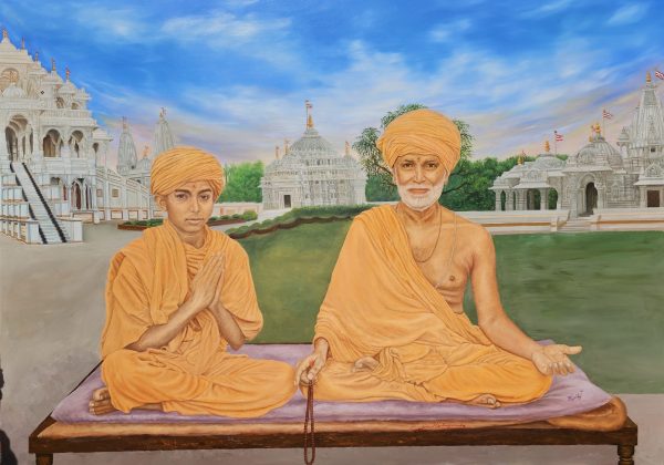 This portrait is a humble offering in remembrance of Pramukh Varni Din. It seeks to capture the spirit of that pivotal day when Pramukh Swami Maharaj embarked on his journey as the president of BAPS. The painting is a reminder of his profound humility and the beginning of his global spiritual legacy.