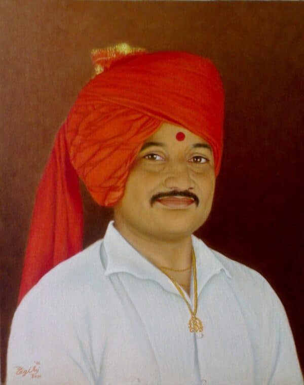 This vibrant portrait captures the confident presence of a proud Indian man, adorned in a striking red turban and traditional jewelry. His warm expression and dignified posture reflect strength, heritage, and cultural pride. A powerful celebration of identity and timeless tradition.