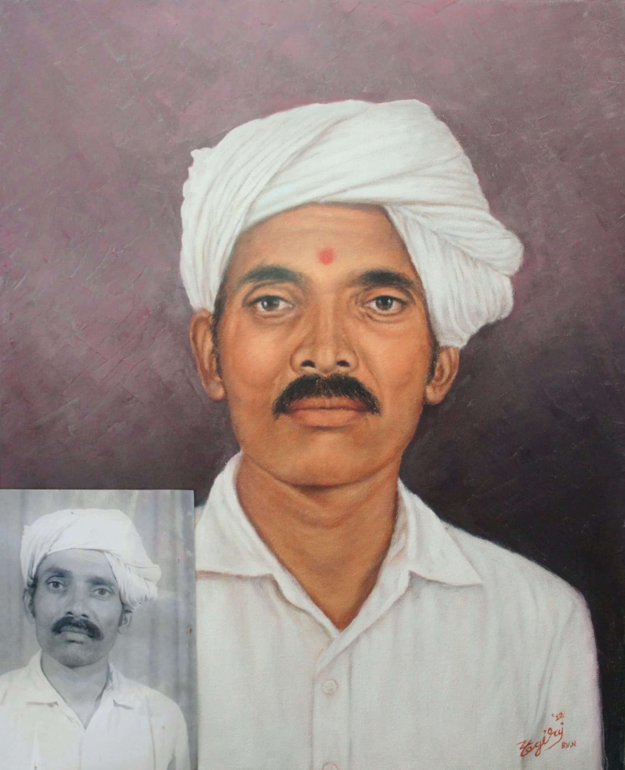 This portrait masterfully brings an old black-and-white photograph to life, restoring the grace and dignity of a proud Indian elder. His turban, expression, and poised gaze evoke a quiet strength and cultural pride. It’s a beautiful tribute to heritage, memory, and timeless character.