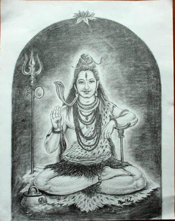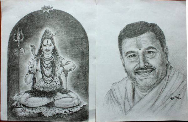Sacred Offering delicately sketches the timeless ritual of a pujari offering prayers to the Shivling. Through fine pencil work, the piece radiates devotion, serenity, and divine connection. A soulful representation of faith captured in quiet, reverent lines.