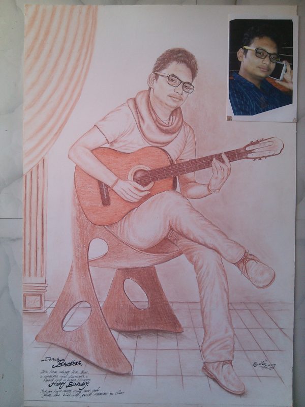 Strings of Solitude captures a quiet moment of connection between a young man and his music. Rendered in delicate pencil strokes, this sketch conveys emotion, rhythm, and introspection with subtle power. A tribute to the soulful language of sound through art.