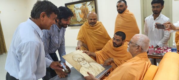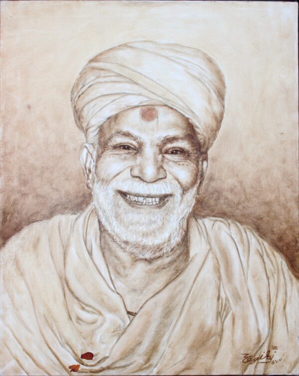 This finely detailed pencil sketch captures the calm and composed essence of Swamiji Maharaj, a beacon of spiritual wisdom and humility. The soft shading highlights his peaceful expression and gentle presence. A tribute to his enlightened soul, the artwork invites quiet reflection and inner peace.