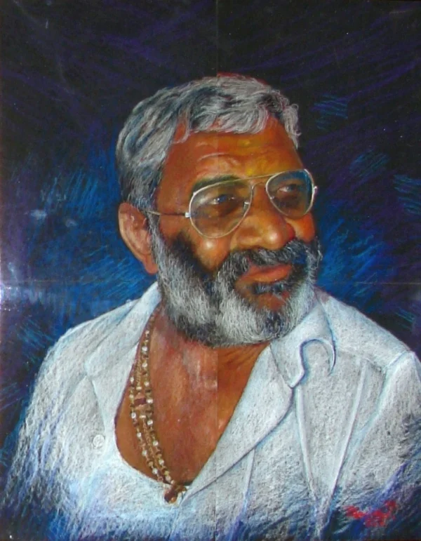This vivid portrait captures the essence of a confident and spirited man, with a warm smile and eyes full of life experience. The textures and vibrant colors reflect his magnetic presence and grounded personality. A striking tribute to individuality, style, and inner strength.