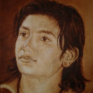 This powerful portrait captures the dignified presence of a man whose silence speaks volumes. His steady gaze and defined features reflect resilience, wisdom, and quiet determination. With lifelike detail and rich tones, the painting becomes a tribute to strength shaped by experience.
