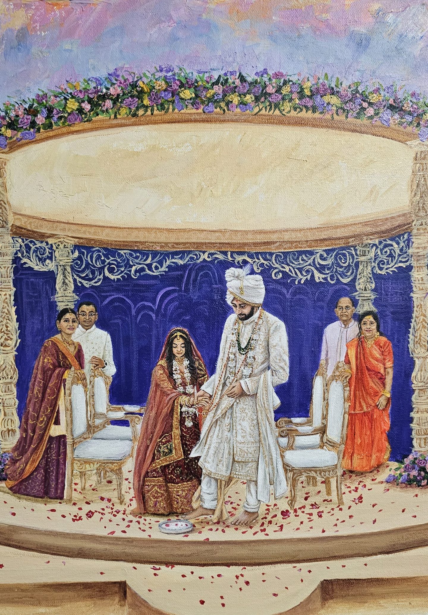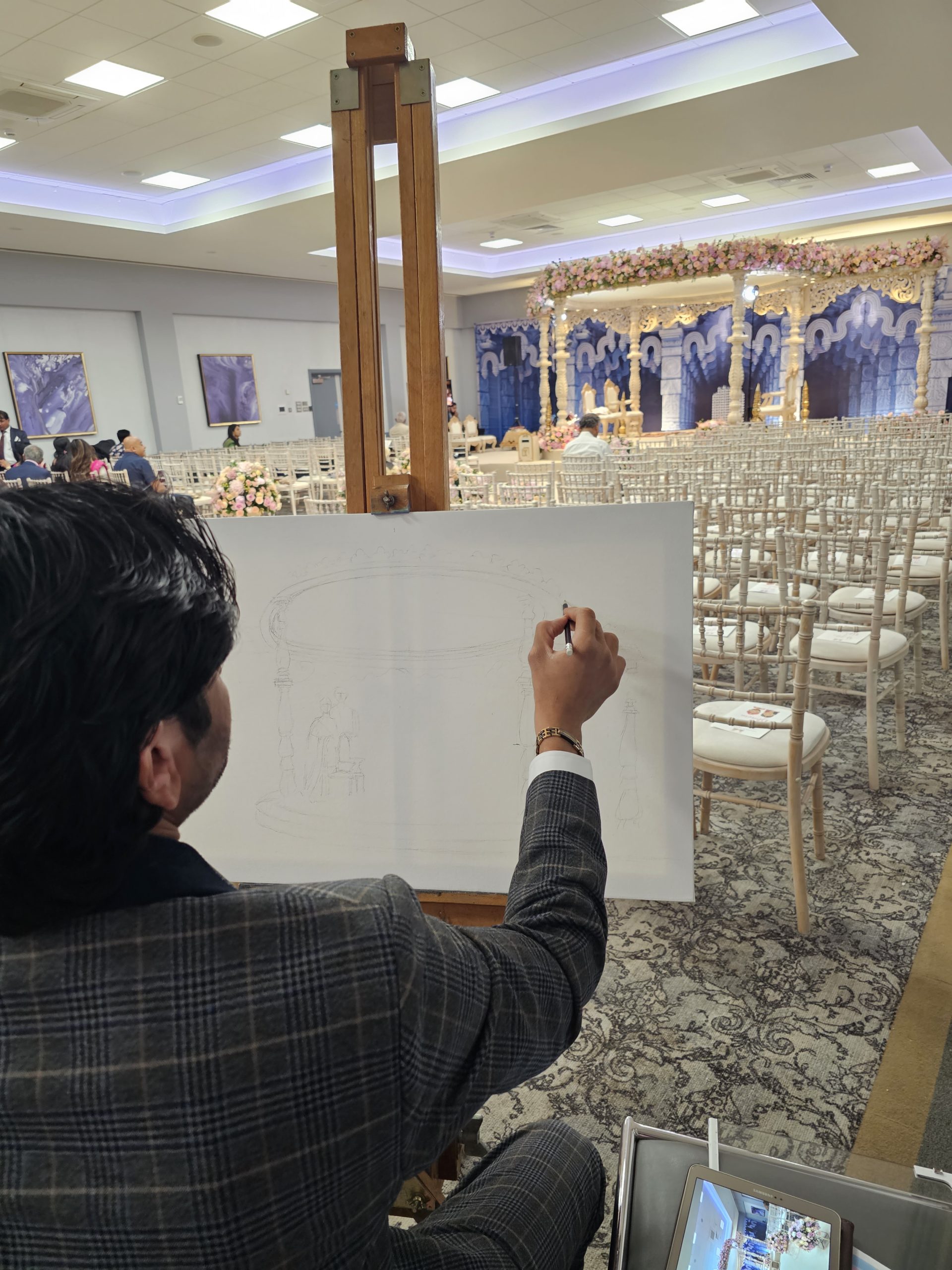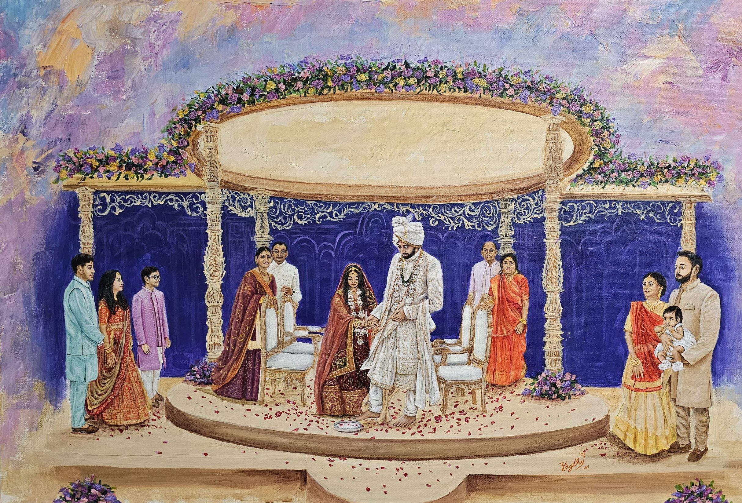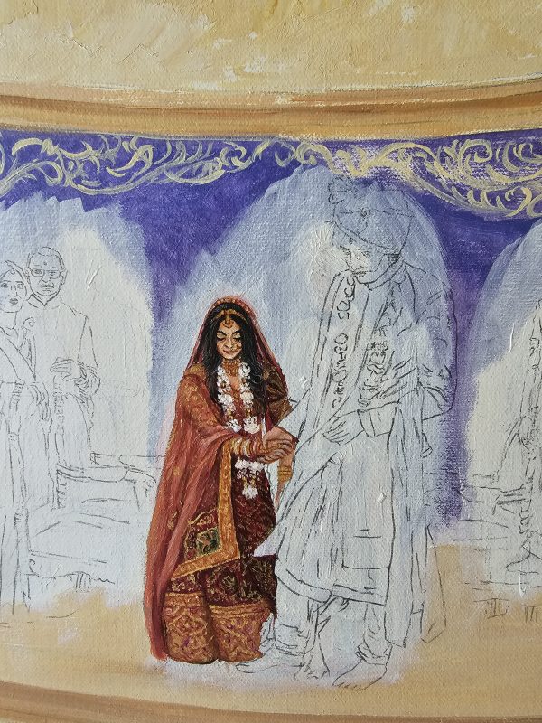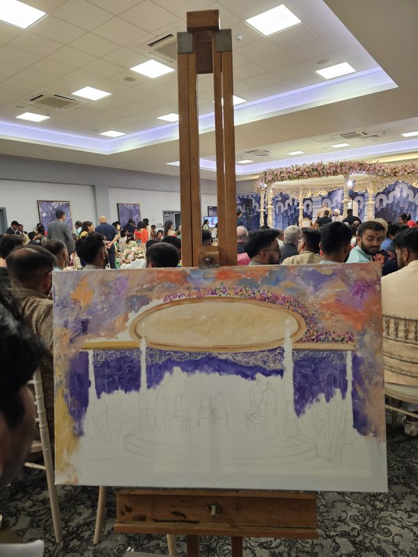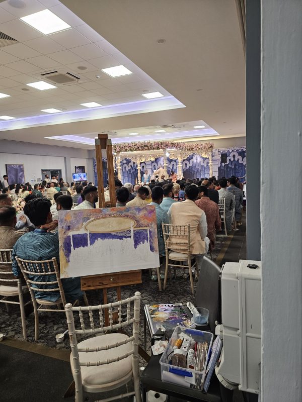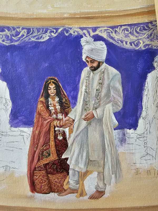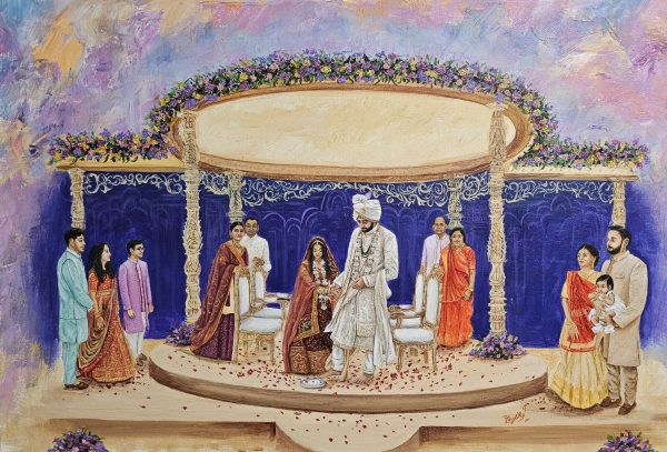 Witness the magic unfold as our artist captures the vibrant essence of your Indian wedding, creating a bespoke masterpiece in real-time. From the intricate details of the ceremony to the joyful expressions of your loved ones, each brushstroke immortalizes your special day as a truly unique and cherished work of art. This isn’t just a painting; it’s a living memory, painted live.