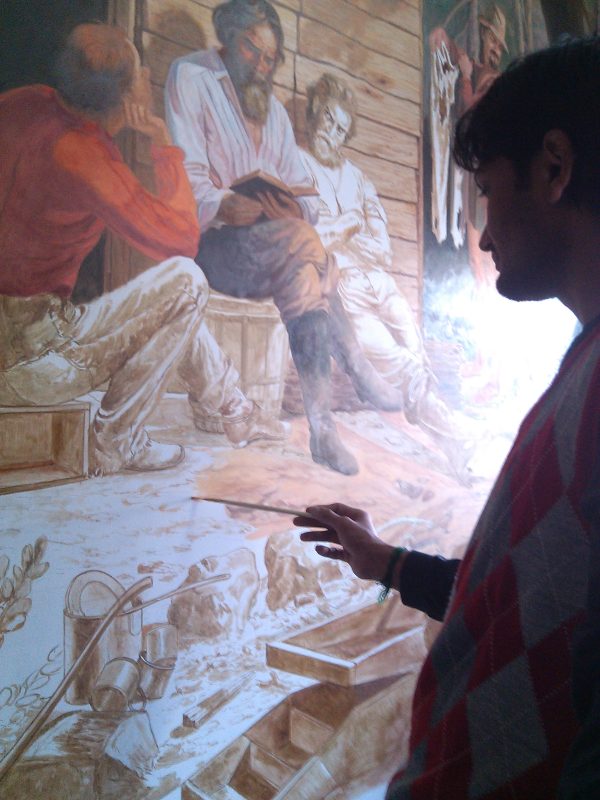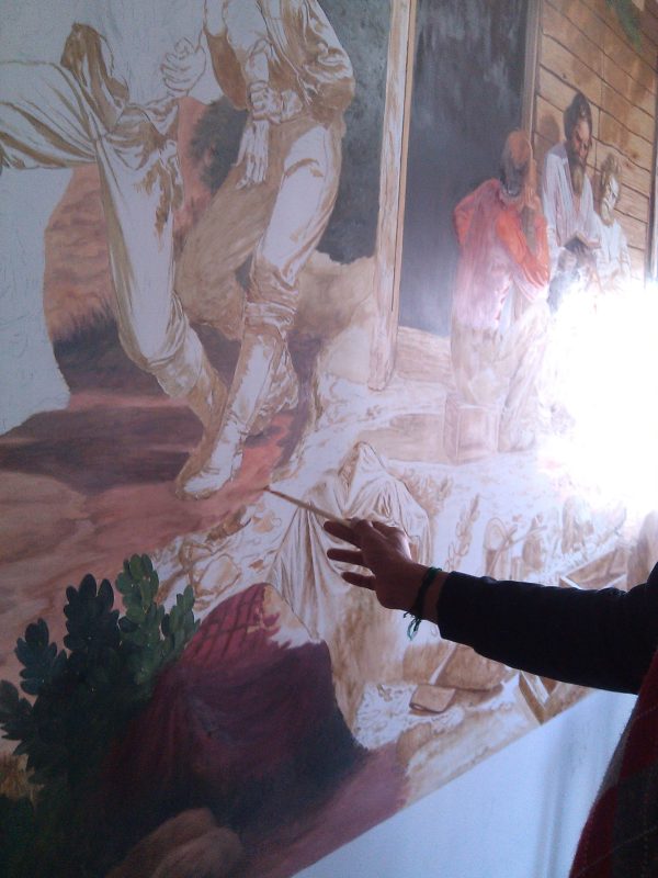 I’ve crafted a Western fresco wall painting, employing traditional techniques to bring a timeless aesthetic to the space. This large-scale artwork showcases classic themes and figures, rendered with the distinctive luminosity and depth characteristic of European fresco art. Each brushstroke contributes to a grand narrative, designed to evoke the elegance and enduring beauty of this historical art form.