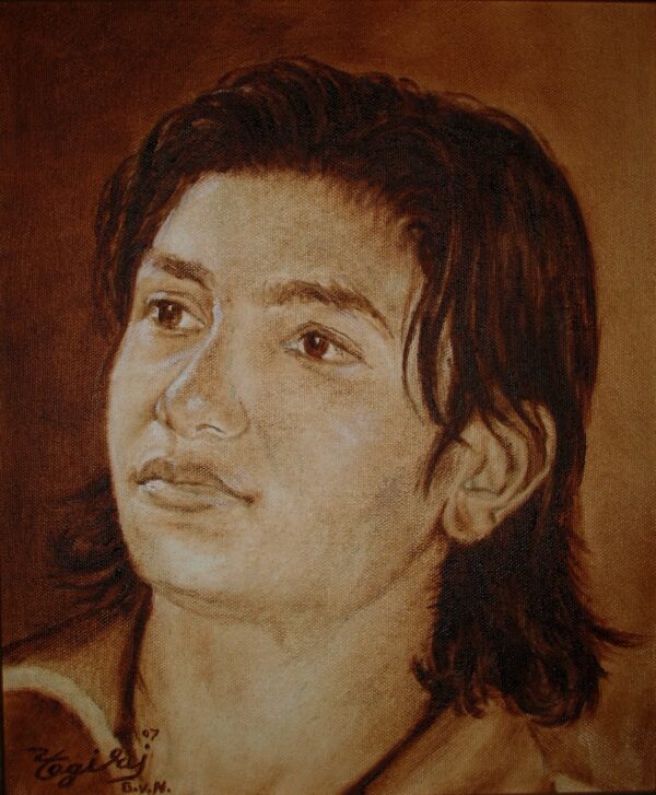 This charming portrait captures Young Paresh in a moment of youthful confidence and innocence. His bright eyes and subtle smile reflect curiosity, energy, and a vibrant spirit. With delicate detail and warmth, the painting preserves a timeless memory of childhood.